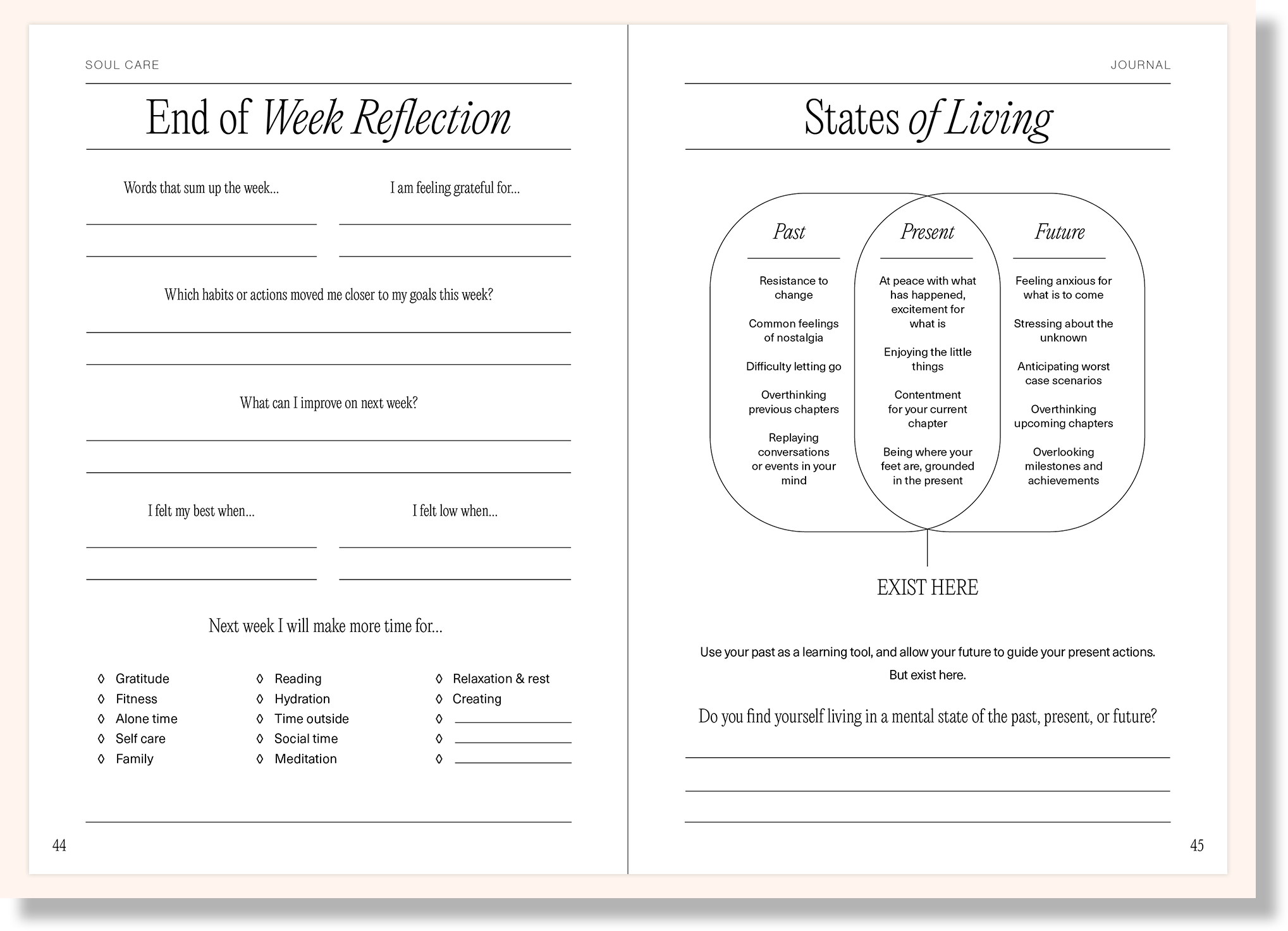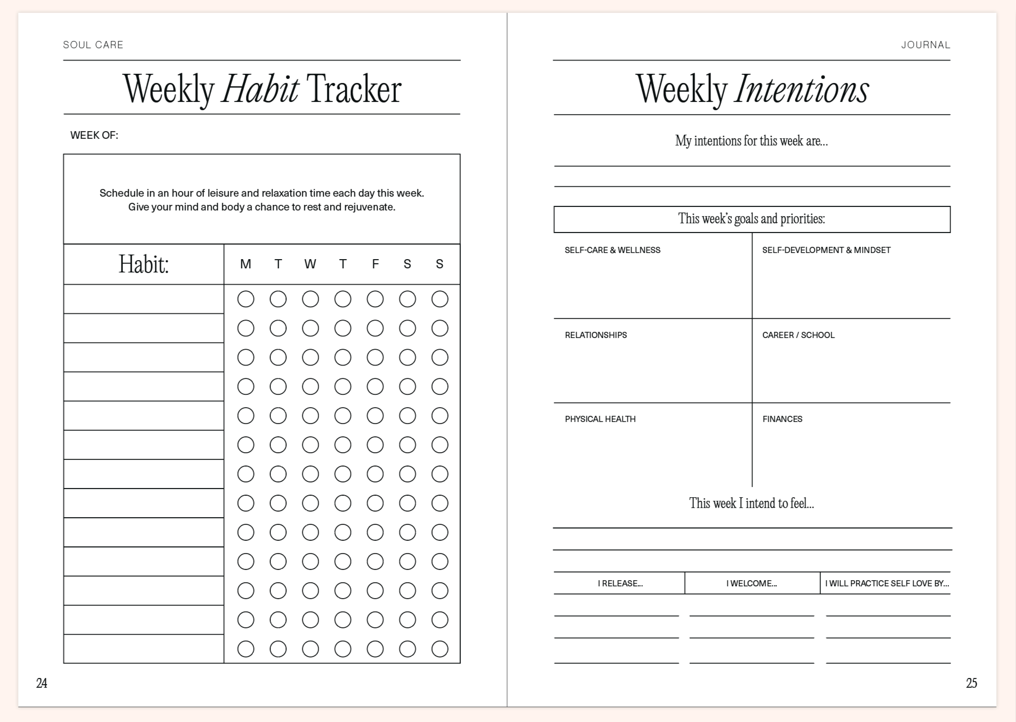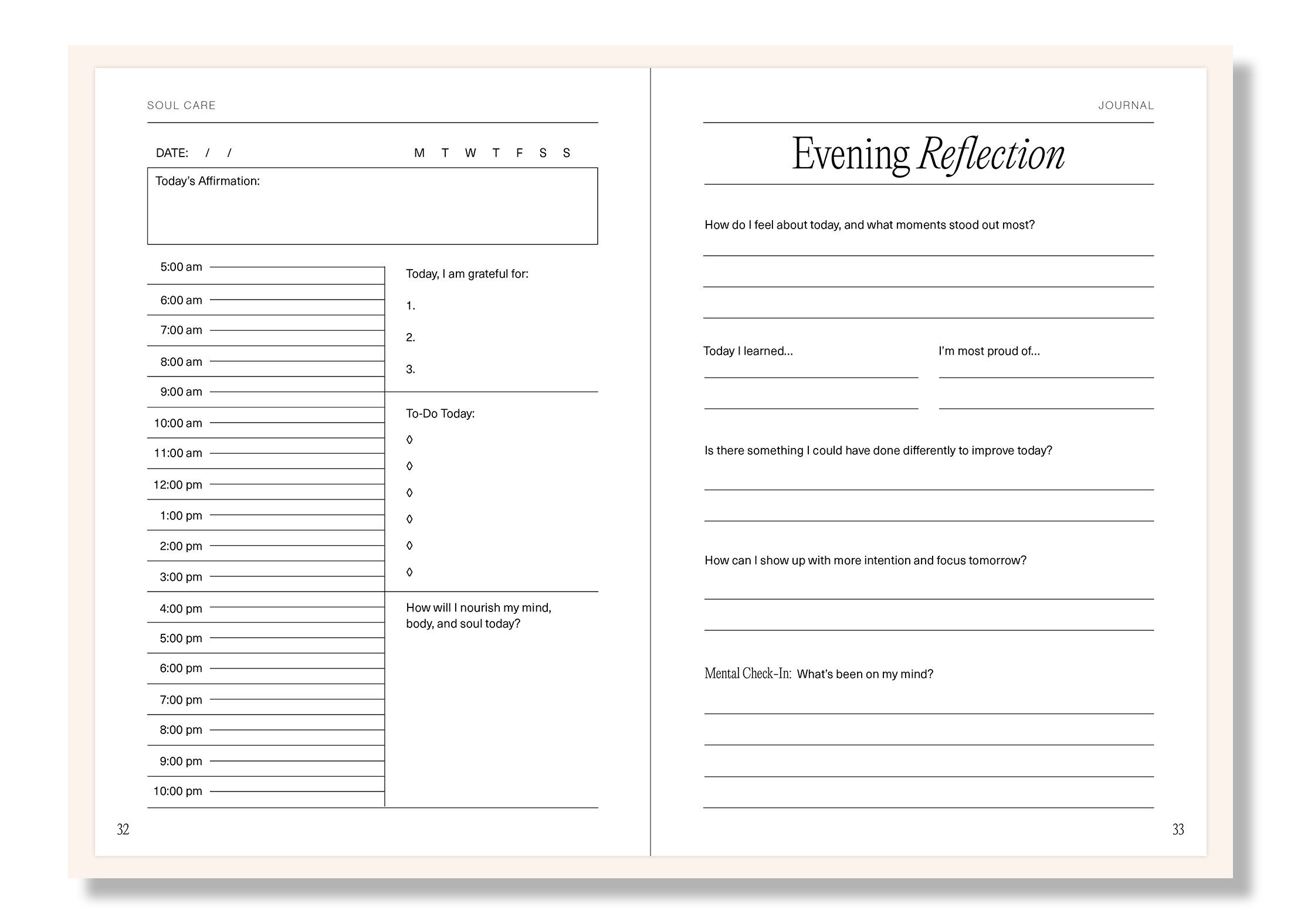 Growth needs a framework. The Soul Care Journal transforms guesswork into a guided journey, offering tools for reflection, habit-building, and mindful intention, all in one beautifully designed space.